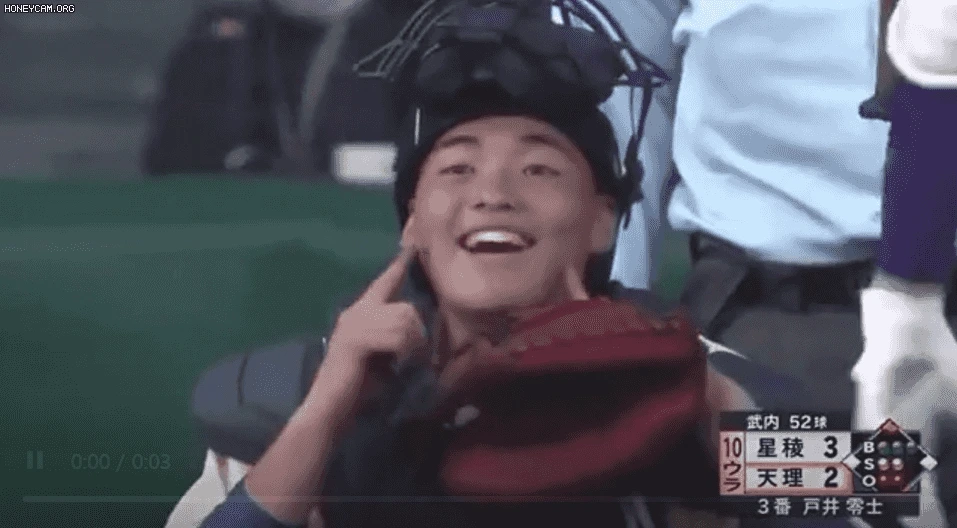 고시엔야구. 고3 포수가 고2 투수에게 웃으란 사인을. 결국 이겼다고 한다. gif 가 너무 좋아 이곳에 옮겼다.