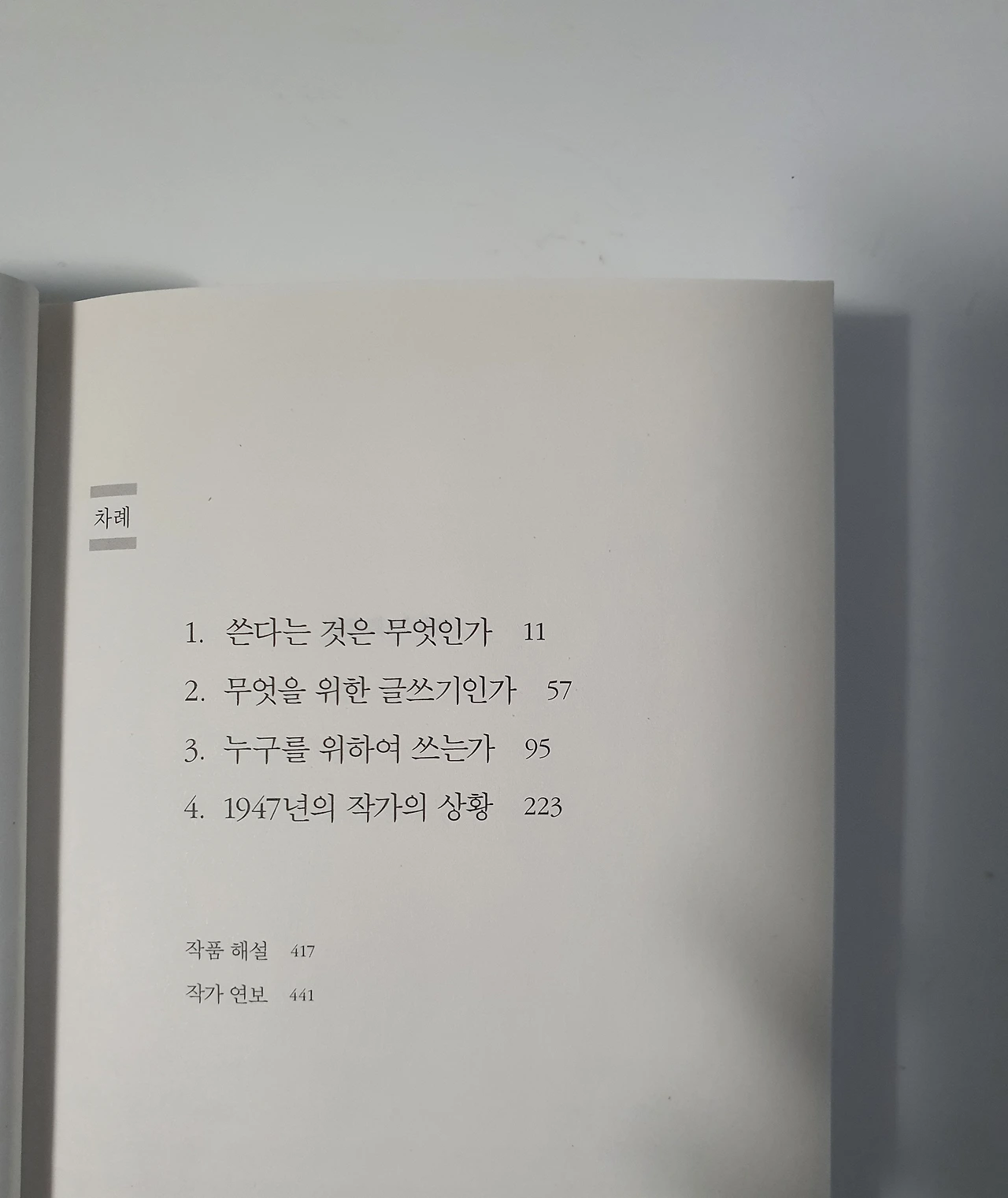 29년 전 이 책을 읽을 때만 해도 '쓴다는 것이 무엇인가'라는 것에 대해서 1도 몰랐고, '무엇을 위한 글쓰기'라는 말조차 이해할 수 없었다. 심지어 '누구를 위하여 쓰는가'라는 챕터까지는 거의 읽지도 못했던 것 같다.
