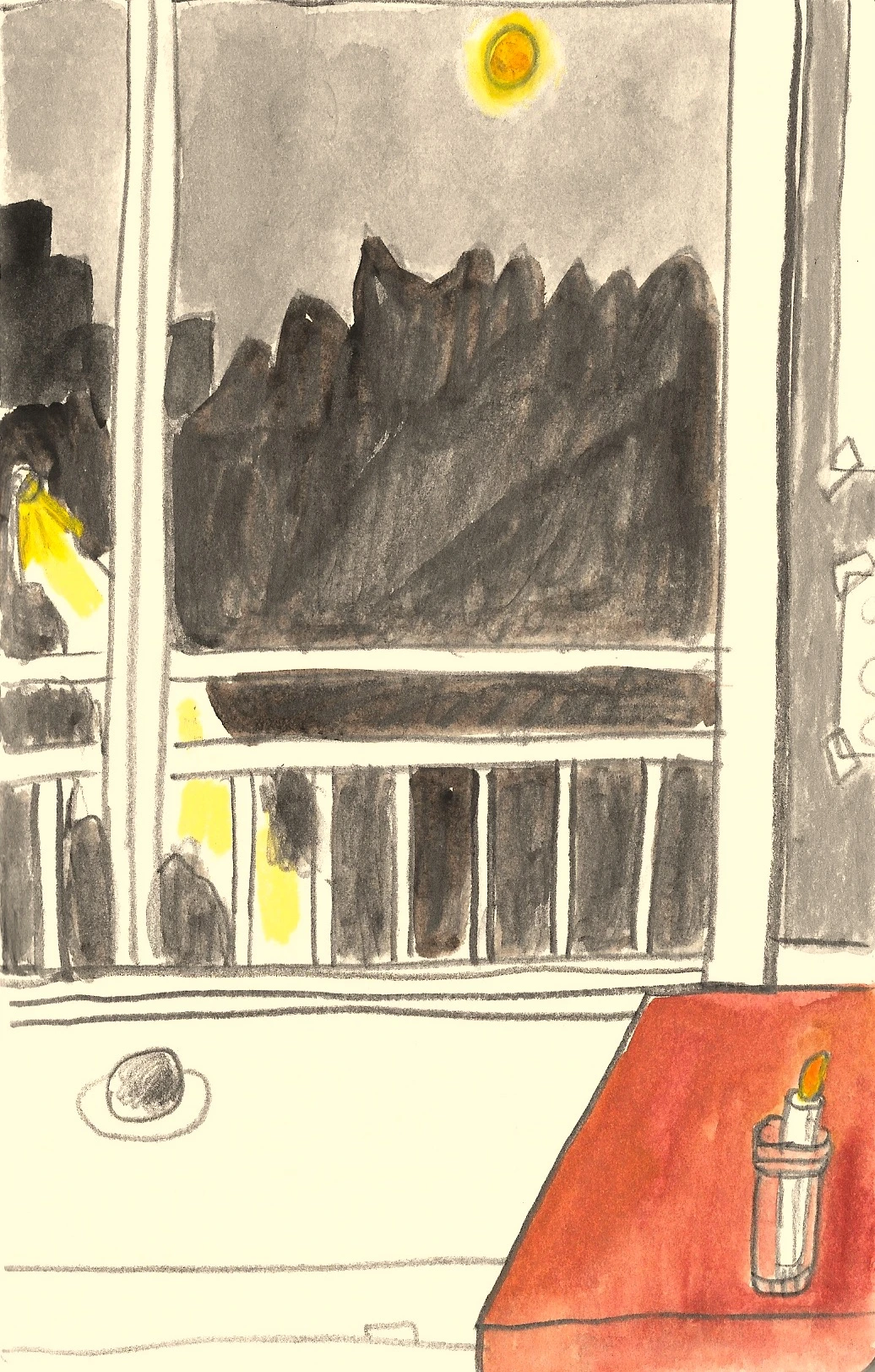 창밖의 달이 높고 밝다.