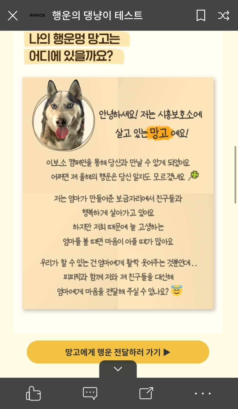 이 테스트를 공유할 때마다 보호소에 1,000원씩 기부된다.