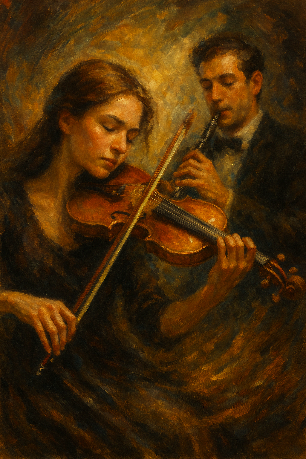 리드하는 바이올린의 선율. 이어 받으며 반복된 연주는 화음을 쌓아 올리고, 따라 들어오는 오보에가 뛰어놀 수 있는 음악적 공간을 열어준다. 현이 끊어질 듯 열정적인, 하나를 피워내기 위한 헌신은 기꺼이 선율을 넘겨 받은 악기를 밀어 올리고. 첫 음 만으로 넓게 울리는 음색은 감정의 동력을 점층해 이어간다. 격렬하게 흔들리는 선을 품는 건 현을 가진 악기의 숙명. 그 진폭을 견뎌내는 지지판의 힘으로 음악은 솟구친다. 가슴 부딪히는 열정이 없이, 어떻게 누군가를 춤추게 할까.