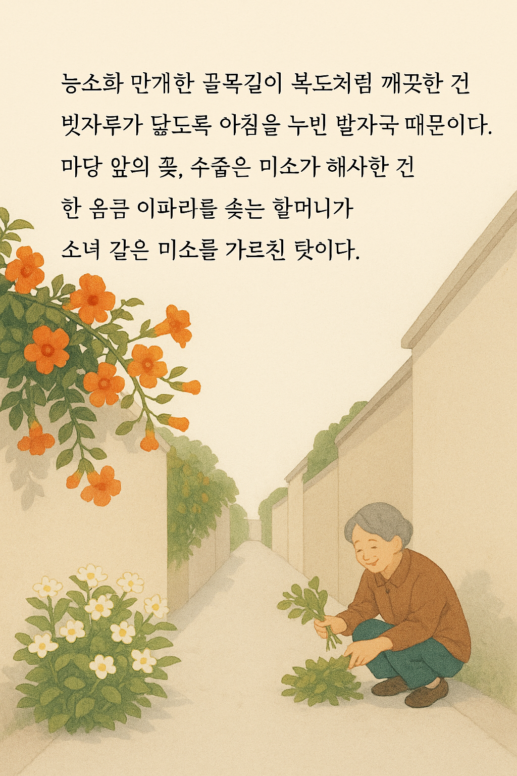 능소화 만개한 골목길이 복도처럼 깨끗한 건