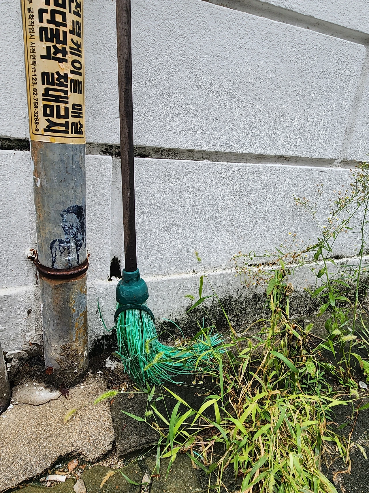 빗자루가 닳도록 아침을 누빈 발자국 때문이다.