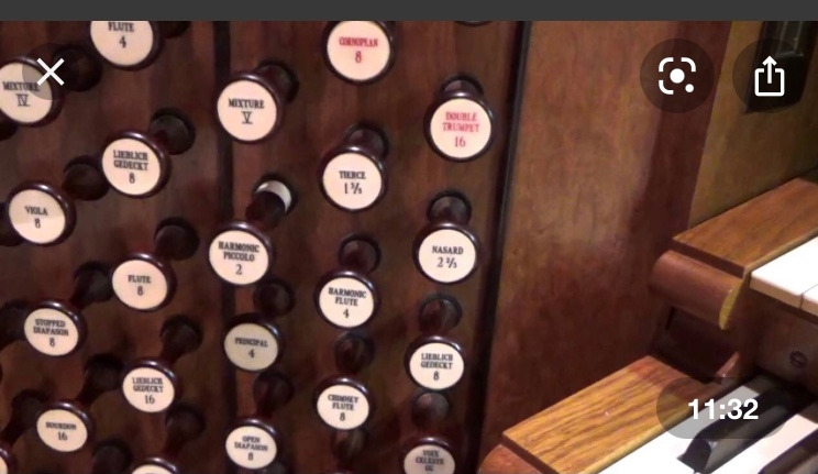 2.파이프 오르간은 각 파이프가 악기, 예를 들어 바이올린, 첼로, 플룻, 클라리넷, 트럼펫 등을 모방하여 소리낸다. 어떤 파이프를 연주할지는 건반 옆에 있는 스탑이라는 버튼을 눌어 정한다. 즉 연주자는 스탑이라는 버튼을 눌러 어떤 파이프를 선택할 지 (즉 어떤 악기를 선택할지) 정할 수 있다.
