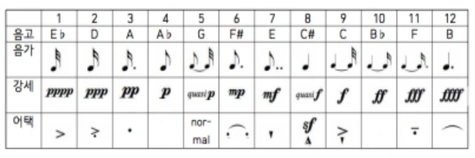 20세기 전반에는 비엔나 출신의 세 음악가, 쇤베르크, 베르크, 베베른이 발전시킨 <12음 기법>이 많이 사용되었지요. 이는 한 옥타브 안에 있는 12개의 음을 1번씩만 사용하여 선율을 만들어서 조성을 없애는 기법입니다. 이후 작곡가들은 음고 뿐만 아니라, 셈여림, 리듬, 어택(엑센트, 테누토 등)도 12개로 나누어서 배열해서 음악을 만드는 기법을 만들었습니다. 12음 기법을 <음렬주의>라고 하면, 음악의 다른 요소들까지 12개로 배열해서 음악을 작곡하는 기법을 <총렬주의, total serialism>이라고 부릅니다.