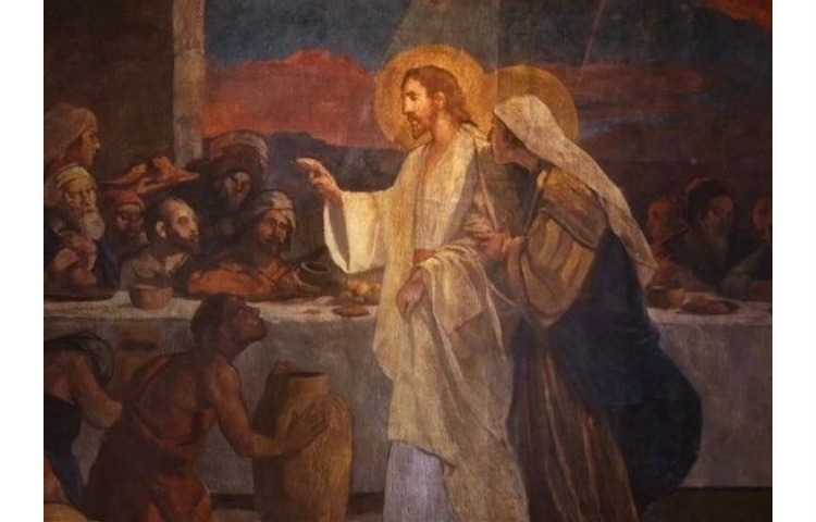 결혼식에 술이 떨어져 주인이 발을 동동 구르자 예수의 어머니 마리아가 예수님께 좀 도와주라고 하신다. 예수님은 처음엔 “아직 때가 되지 않았다”라고 빼시지만(?) 물을 포도주로 바꾸는 기적을 일으키신다. 사람들은 예수님이 만든 포도주를 맛보며 매우 즐거워한다.