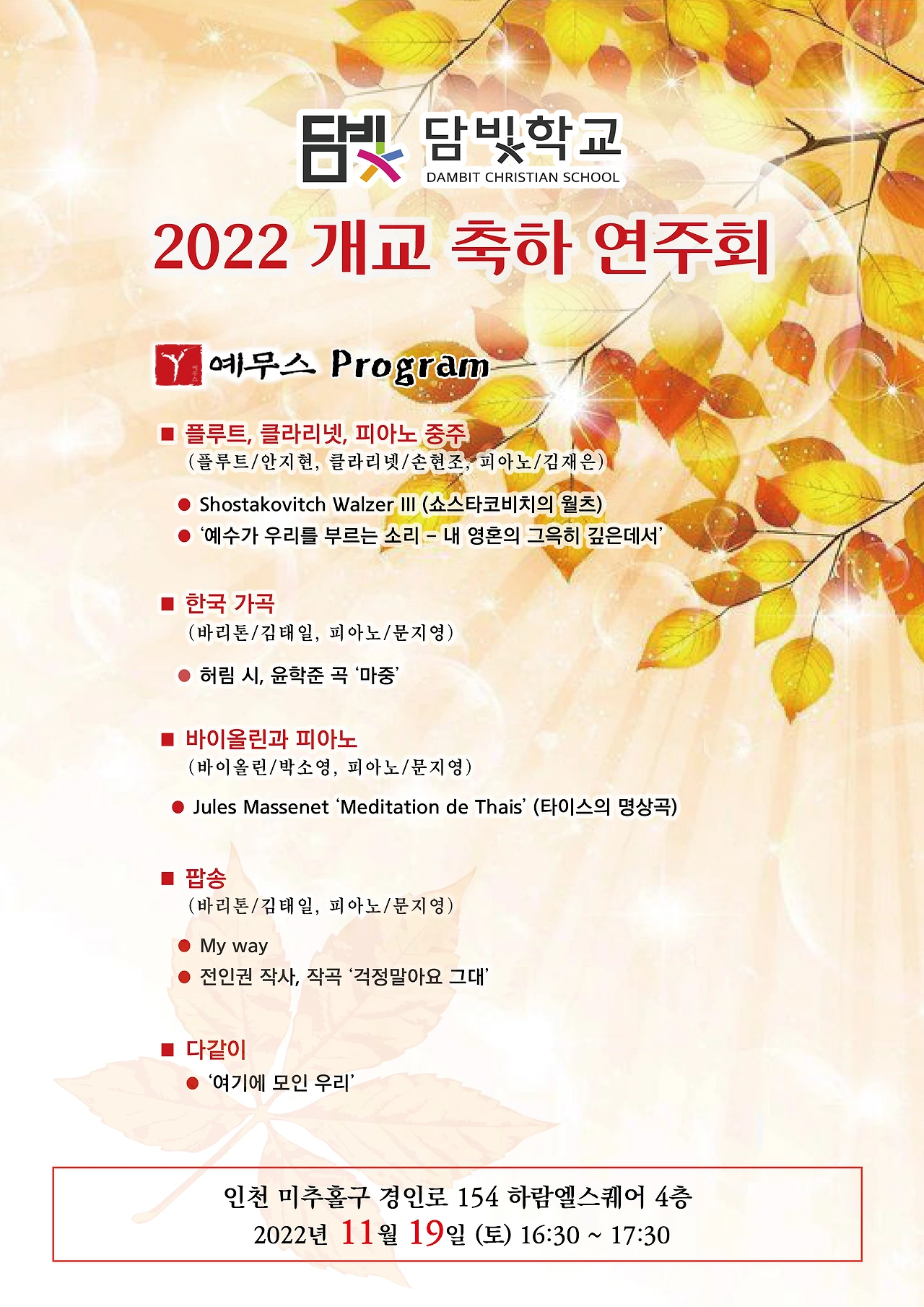 후배인 설동준이 세운 기독교 대안학교의 개교 축하 음악회가 내일 인천 제물포에서 열립니다.