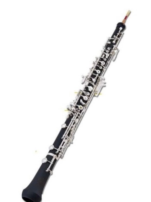 오보에는 클라리넷과 아주 비슷하게 생겼어요. 검은색 나무관으로 되어 있습니다. 다만 오보에는 빨대같이 뾰족한 것이 취구부(입으로 부는 부분)에 붙어 있죠.