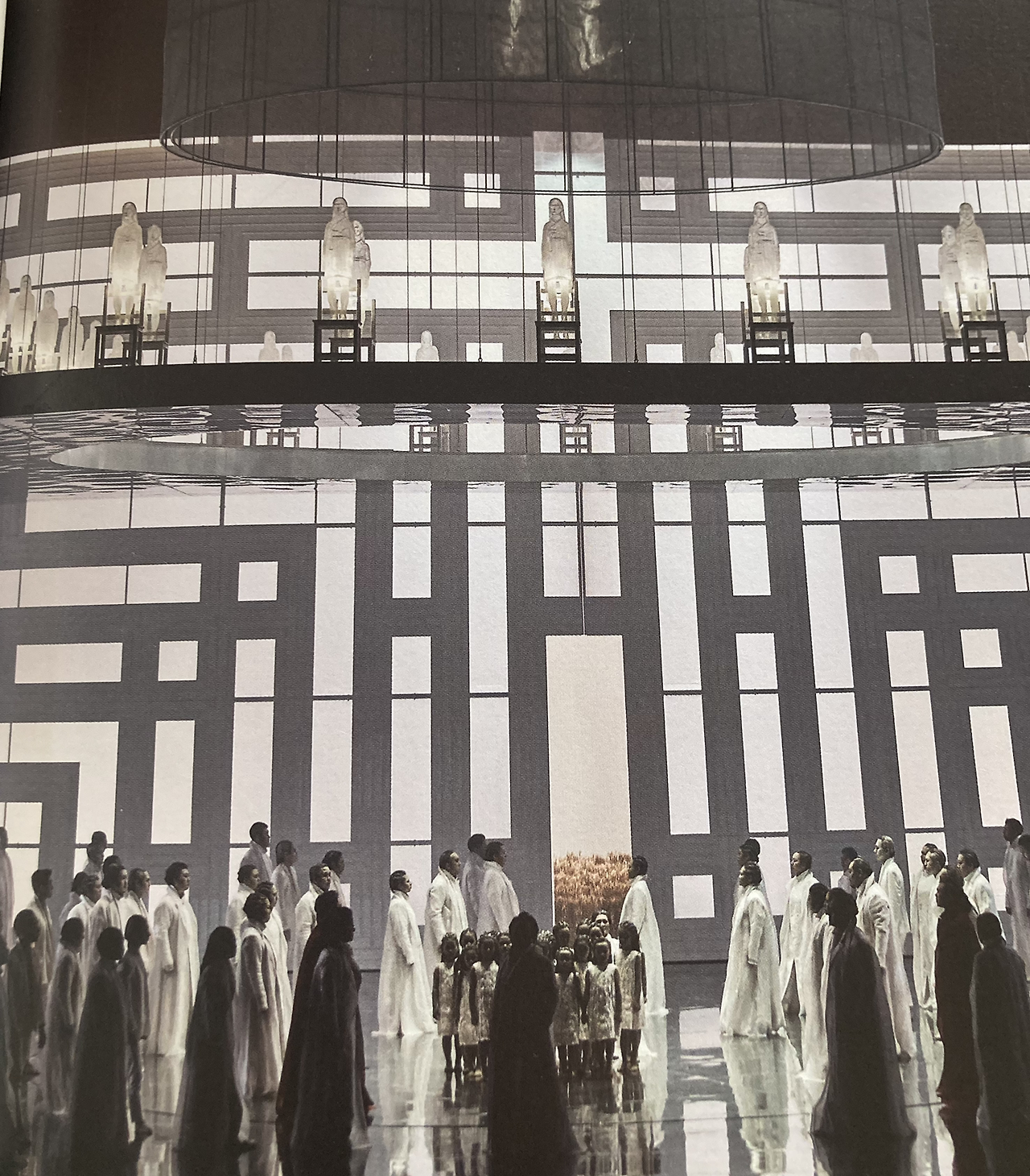 이번 국립 오페라단의 공연은 성악가들의 기량도 좋았지만 특히 무대가 매우 멋있었다. 하얀색(유대교를 믿는 히브리인)과 빨간 색 (이교도를 믿는 바빌론 사람들) 의상의 대비가 인상적이었다.