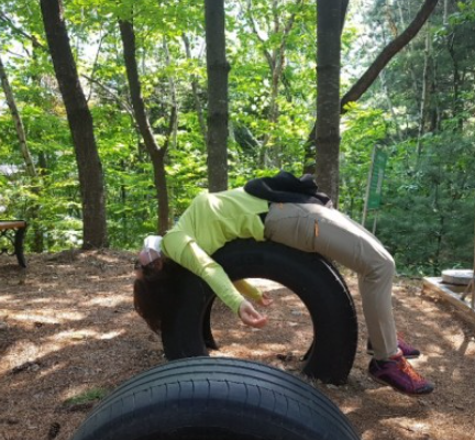 하루는 아빠가 산에서 크게 다친 적이 있다. 타이어를 반쯤 땅에 묻어 운동기구를 만든 것이 있었는데 , 아빠는 타이어 위에 누워 스트레칭을 하다가 넘어지셨다. 목을 다치셨는데 다행히 집에 돌아올 수는 있었다.