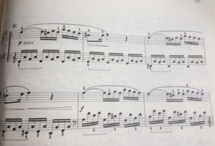 그러다가 전혀 다른 B 선율이 나오지요. (동영상 2분 5초를 들어보세요)
