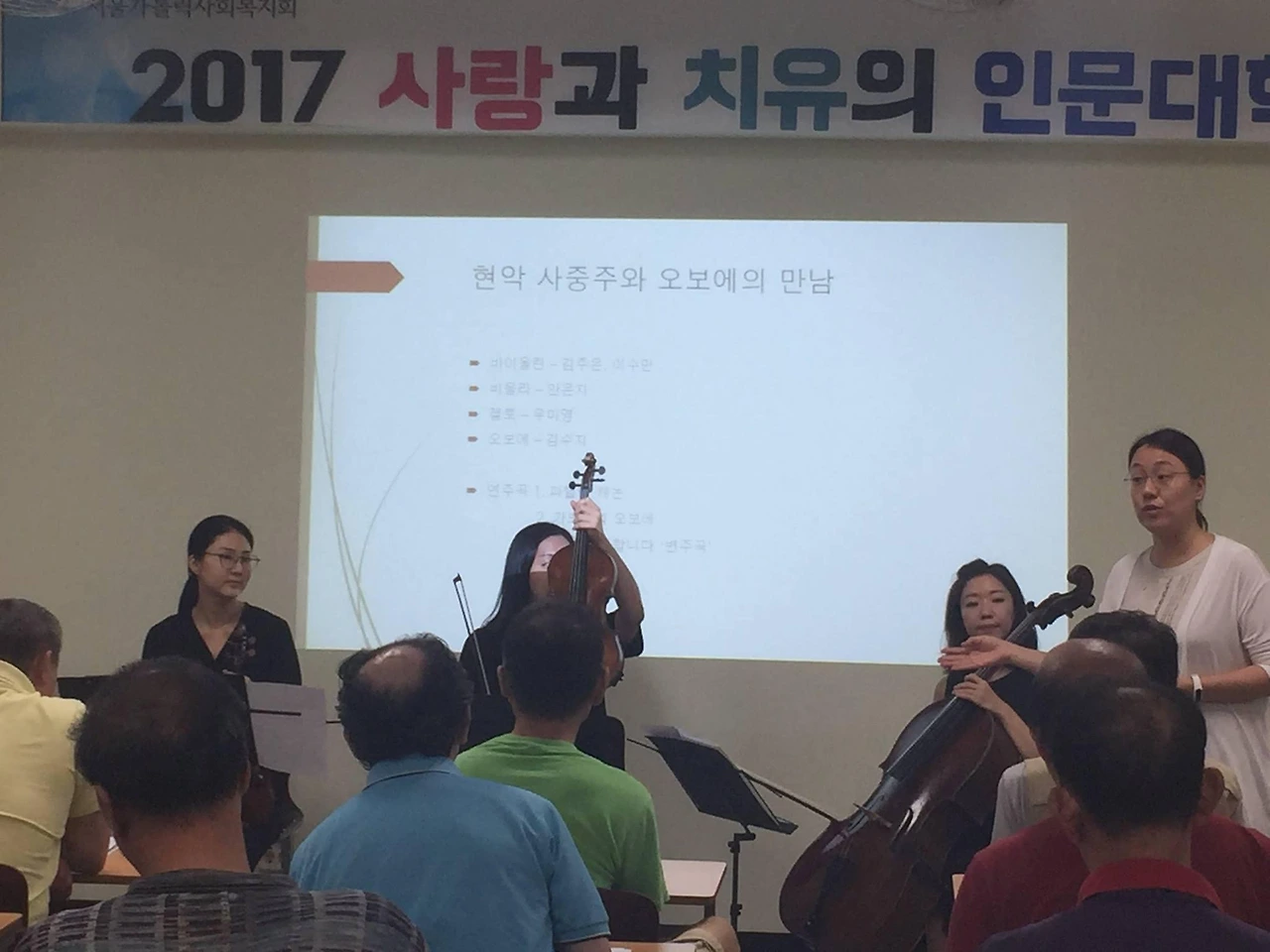 노숙인 분들의 프라이버시를 위해 등만 찍었는데도 등만 봐도 얼굴이 떠오르며 그립고 감사하다. 그리고 제자가 좋은 일 한다고, 연주 봉사 단체인 '예무스'의 단원들을 보내주신 김재은선생님 정말 감사합니다. 함께 한 예고 동창들, 선배 언니 정말 감사해요. 마지막 수업 때는 김재은 선생님께서 직접 오셔서 부족한 강의에 힘을 실어주셔서 잘 마무리 할 수 있었다.