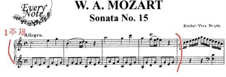 고전주의 시대 선율은 어떠했을까요? 전에 설명한 모차르트 피아노 소나타 기억나세요?