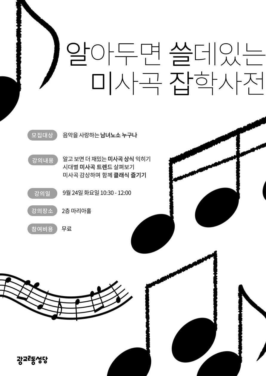9/24(화) 광교 2동 성당 마리아홀에서 음악 특강을 하려 합니다
