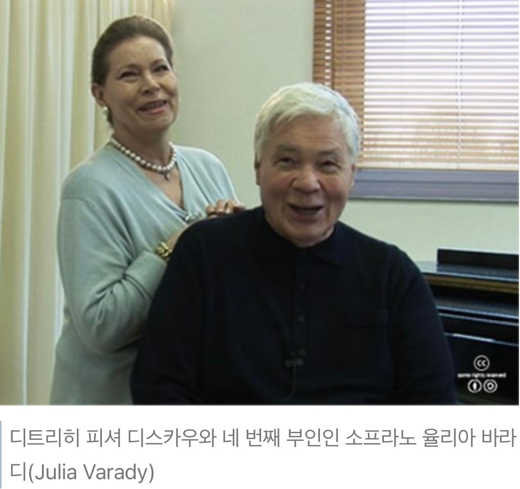 세 아이를 낳고 행복한 가정을 꾸렸지만, 셋째를 출산하며 아내는 사망합니다. 이후 디스카우는 3번이나 더 결혼을 해요. 그는 마지막에 소프라노 율리아와 결혼해 여생을 함께 합니다.