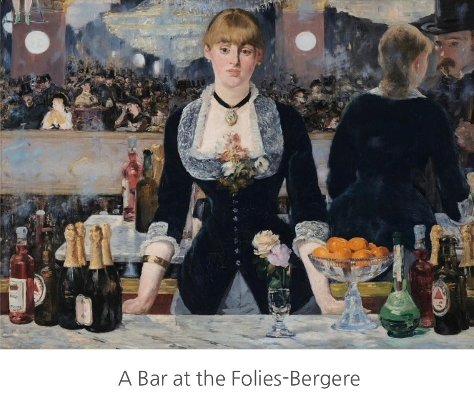 그리고 샤브리에는 인상파 화가들의 그림을 매우 좋아했다고 해요. 인상파 화가들이 유명해지기 전에 사둔 그림도 여럿 있었다고 하는데 현재 미술관이나 박물관에 전시되어 있대요. 인상파 화가 중 마네와는 평생 절친으로 지냈습니다. 마네의 유명한 그림 < 폴리 베르제르의 바(아래 그림)>의 첫번째 소유자도 샤브리에였다고 하네요.