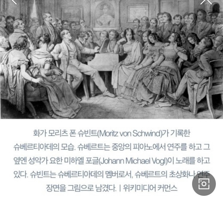 그러나 매일 밤 시를 읽고 작곡을 하던 슈베르트는 음악에 대한 열정을 이기지 못하고 전업 작곡가가 됩니다. 이 때부터 매우 가난하게 살았지요. 피아노 한 대 사지 못하여 기타로 작곡을 했고, 친구네 집을 전전하며 살았답니다. 그러나 성격이 온화하고 친절했던 슈베르트는 친구들이 참 많았어요. 저녁마다 모여서 음악을 연주하고 춤을 추며 지냈지요. 이 모임을 슈베르트 친구들의 모임, 즉 ‘슈베르티아데’라고 불렀습니다