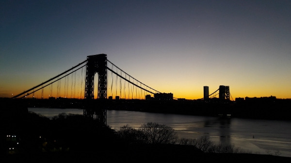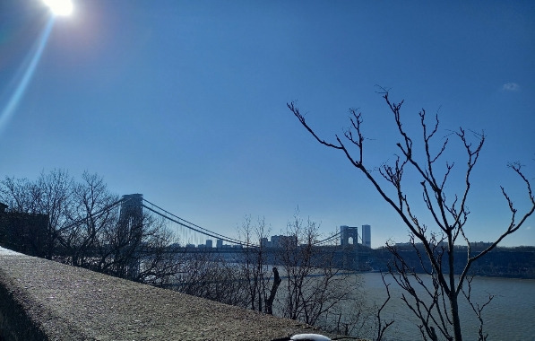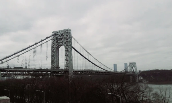 내가 뉴욕에서 처음으로 궁금한 것이 바로 이 다리였다. 도착한 다음날 아침에 창문에서는 일부만 보이는 이 다리의 전체 모습을 확인하기 위해 밖으로 나갔다. 잠은 거의 자지 못했고 그저께 내렸다는 눈이 아직도 그대로 쌓여있었다. 아파트 뒤로 돌아가 허드슨 강변을 따라 5분 정도 걸어 올라가니 다리가 서서히 모습을 드러냈다. 하늘은 구름 한 점 없이 맑았으나 뉴욕의 2월은 서울보다 더 추운 듯이 느껴졌다. 강의 모습이 넓게 보일수록 다리에 가까워질수록 더욱 날카로운 바람이 불었다. 도시에 흐르는 강바람의 느낌이 아니다 바닷바람 같았다. 조지 워싱턴 브리지(George Washington Bridge)였다. 미국의 초대 대통령 이름으로 지은 조지 워싱턴 다리가 수도 워싱턴이 아닌 뉴욕 맨해튼 북쪽에 있다니... 나중에 알았지만 미국 전역에 워싱턴이라는 지명이 300군데나 된다고 한다. 조지 워싱턴이 독립 전쟁에서 승리할 때 미국의 수도는 뉴욕이기도 했다고.