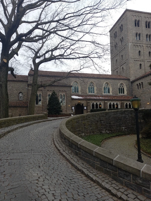 내가 보름동안 지낸 맨해튼 북쪽 동네, '뉴욕에서 제일 긴 것으로 악명이 높은' A 트레인의 마지막 전역 근처. 숙소에서 나와 왼쪽으로 허드슨 강변 산책길을 따라 10분 정도 걷다 보면 '포트 트라이언 공원'이 나온다. 남북 전쟁 당시 요새다. 위쪽으로 점점 높아지는 테라스는 돌로 쌓아 올린 요새의 벽이 그대로 남아있다. 이 지형은 맨해튼 땅을 다질 때 여기까지는 여력이 닿지 않은 걸까 싶기도 했지만, 나중에 알고 보니 옛 모습 그대로 둔 이유가 있었다. 길고 높게 쌓아 올린 석축에는 발코니처럼 튀어나온 곳이 군데군데 있다. 요새의 발코니에서 경치를 둘러보면 겨울나무 가지 사이로 중세 수도원이라고 생각할 만한 석조 건물이 보인다. 바로 뉴욕 메트로폴리스박물관(The met)의 분관, 클로이스터스(The Met Cloisters)다.