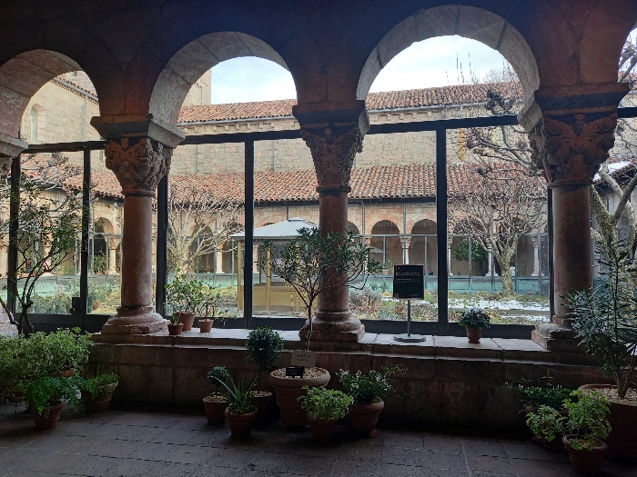 중세 유럽 어디에 있었을 법한, 얼핏 움베르토 에코의 <장미의 이름>에 나올 법한 수도원이 연상되는 외관이다. 공식적으로 1602년 메이플라워호로 시작되는 미국땅에서 '육중한 무게감의 중세 석조 블록'을 만난 것이다. 현대적인 미술관의 외관을 상상하다가, 뜻밖의 모습에 돌길을 밟아 올라가는 순간부터 감동이 밀려왔다. 숲이 울창한 계절에 아무것도 모른 채 산책하다가 클로이스터스를 마주한다면 다른 시대로 들어가는 판타지로 착각할 수도 있을 것 같다. 실제로 12세기나 13세기에 수도사들이 예배하던 수도원인줄 알았다. 중세 예술품 전시관으로 따로 지어진 공간이라는 것이 믿기지 않을 정도의 숭고함이 배어있다.