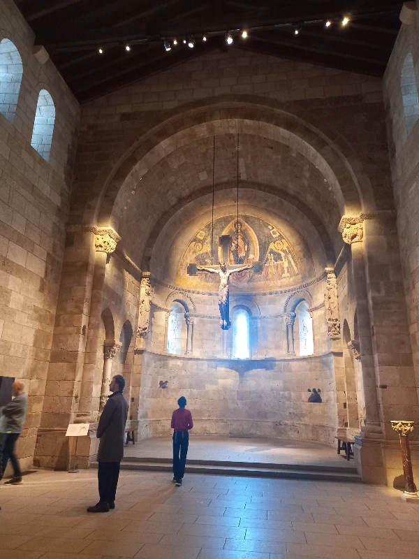 한국에서 예수상을 보고 숭고한 느낌을 받은 적이 있었던가. 깊고 둥근 천장 아래 십자가에 매달려 공중에 떠 있는 예수상을 마주한다. '애수'가 느껴진다는 패트릭 브링리의 표현을 빌리지 않아도 걷잡을 수 없는 복합적인 슬픔 감정이 밀려든다. 슬픔에도 전율을 느낄 수 있다는 것을 처음 알았다. 내가 착각한 것이 아니라 실제 12세기 스페인 푸엔테두에나의 예배당을 해체하여 가져온 것이다. 예수상의 위로 역시 스페인 카탈루니아 프레스코화가 천정을 장식하고 있다. 록펠러 가문이 투자한 덕분에 유럽의 수도원을 그대로 가져올 수 있었던 것이라 한다. 클로이스터스를 둘러싼 자연환경도 사람의 손이 닿지 않은 곳 같은 울창한 숲이 그대로 있는 이유도 의도한 바라고 한다. 중세 수도원이 있던 시절부터 현대 문명의 간섭을 받지 않고, 거칠게 자연 그대로 가지를 뻗은 나무들로 이루어진 중세의 숲이다.