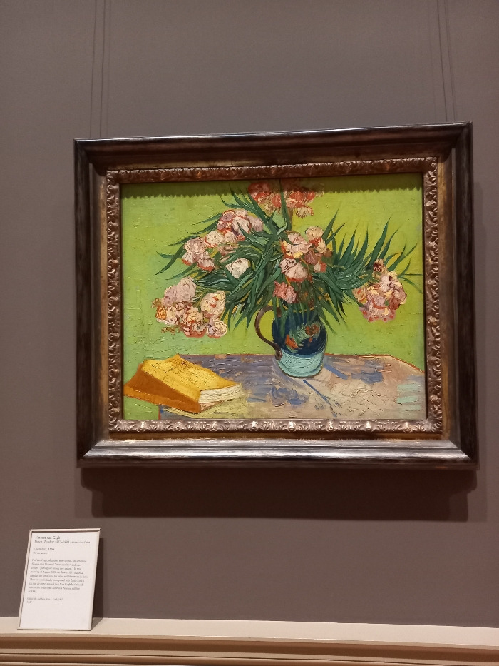 세 번째 꽃 그림은 강렬한 색채에 강렬한 삶의 열정이 느껴졌다. 화병 옆에 놓인 책은 에밀 졸라의 <생의 기쁨>이라고 나중에 알게 되었다. 제목과는 달리 내용은 비관적인 소설인데, 평생 독서가였다는 고흐는 에밀 졸라의 삶을 해석하고 영감을 끌어내는 방식을 좋아했다고 한다. (빈센트가 사랑한 책, 86p) 빈센트 반 고흐가 불행한 이미지를 가졌다면, 그것과 그의 그림은 별개의 것으로 인식해야 할 것 같다. 바로 이 미술관에서 10년 동안 예술작품을 마주한 패트릭 브릴리의 말처럼, 예술이 무엇을 드러내는지 이해하려고, 빈센트 반 고흐의 삶을 다시 들여다보고 싶어졌다. 메트박물관 소장품 2백만 점 중에 단 석 점을 보았는데, 아무런 혜택 없이 입장료 35달러를 지불해도 아깝지 않을 것 같다.
