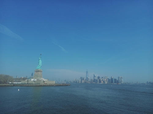 자유의 섬, 자유의 여신상이 모셔진(?) 섬. 뉴욕항 앞바다에 있는 작은 섬에 자유의 상을 놓았다. 맨해튼의 마천루 때문에 내륙 도시 이미지가 강하지만 사실 뉴욕은 항구 도시다. 항구라는 지리적 이점이 맨해튼을 급성장시키고 성장의 성장의 거듭하여 세계 최대의 도시 스카이 라인을 만들었다. 뉴욕항의 앞바다는 바다의 느낌이다. 우리나라에서 오징어배가 정박해 있는 항구와는 전혀 다른 대양의 기운이 있다고나 할까. 날이 흐린 듯 맑은 듯 어중간했다. 바다는 하늘색을 닮는 법인데 하늘이 맑으면 바다도 맑고 하늘이 흐리면 바다도 회색빛이다. 수시로 변하는 바다색과 상관없이 민트색의 자유의 여신상은 가까이 다가갈수록 거대하게 느껴진다. 저 추레해 보이는 조각상의 옷이 민트색이 된 이유가 리버티섬에 있었을 법하다. 나와 함께 크루즈를 탄 사람들은 유럽 여행객들이었다. 아마 거의 폴란드말이었나. 페리가 곡선으로 휘어지면서 자유의 여신상을 끼고도는 데 자유상이 눈앞에 두둥 나타나자마자 일제히 일어선다. 배위에서 일어나지 말라는 경고는 아무 의미가 없는 안내판. 그 크기를 짐작할 수 있을 때 사람들은 다 난간에 서서 사진 찍기 바쁘다. 10미터에 이르는 거대한 조각상이 바다에 떠있다. 가까이서 보니 그제야 실감이 난다.