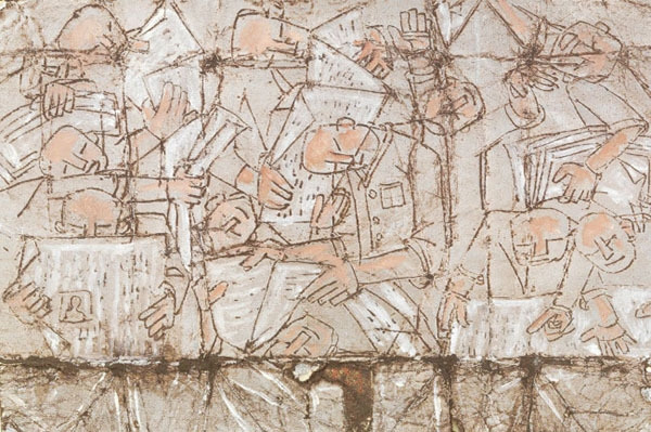 이중섭, 신문을 보는 사람들( People Reading the Newspaper), 1950-52, 10x15, MoMA 소장품