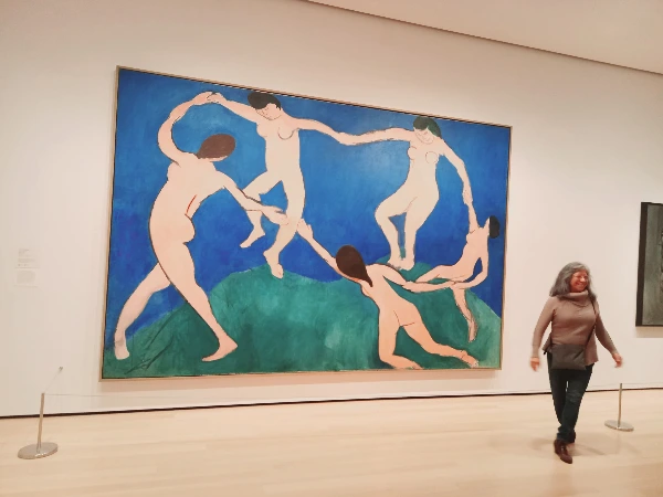 모마에 가니 서울 전시회에서 만나거나 이래저래 알려져서 우리에게 잘 알려진 화가들의 익숙한 그림이 많이 있었다. '앙리 마티스'를 비롯하여 '샤갈'이나 '피카소' 같이, 20년 이내에 서울에 왔던 그림들이 거기 있었다. 앙리 마티스의 특히 내가 <연대>라고 기억하고 있었던 그림 <댄스>를 만나자 고등학교 동창 만나듯 반가웠다. 2005년에 앙리 마티스 서울 전시회에서 봤던 그림들이 있었다.