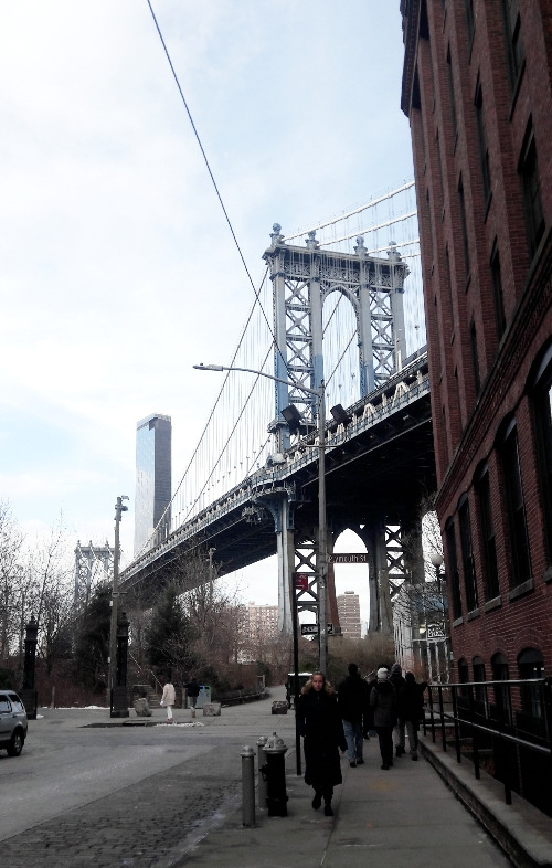 덤보 굴뚝 아래의 정면으로 파워 하우스 아레나 책방이 보인다. 이 동네에서 역시 오래도록 자리 잡고 있는 서점이다. 천장이 높은 책방을 나서 길을 돌아가면 우리나라 성수동처럼 현대적인 쓰임으로 탈바꿈한 브루클린의 옛 건물들이 나온다. 다양한 인종들만큼 다양한 생활 문화가 충돌하면서 서로를 인정하기까지는 숱한 사연들이 흘러간 시간만큼 쌓였을 것이다. 평일이라 사람이 별로 없는 것 같았으나 옛 건물을 돌아서니, 사람들은 바로 그 위치에 모여있었다. 영화 <원스 어폰 어 타임 인 아메리카>에서 등장한 이후 뉴욕의 이미지로 굳은 바로 거기, 붉은색 두 건물 사이로 맨해튼 브리지가 보이는 그 앞에 말이다. 와우. 약간의 각도의 오차 없이 오랜 시간 봐온 그 장면 그대로가 보인다니 신기했다.