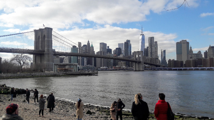 누가 브루클린 다리가 보이는 해변(?)이라고 했는데, 강변이라고 해야 맞을 듯하다. 강으로 둘러싸인 섬인 맨해튼을 가기 위해서 다리는 필수적이었다. 브루클린 브리지가 먼저 생기고 비로소 맨해튼의 고층빌딩이 하나둘씩 세워졌다. 1863년에 시작하여 1883년 완공까지 두 세대를 이은 한 가족의 헌신으로 현대 뉴욕의 도시 이미지는 완성된 것이라 해도 과언이 아니다.