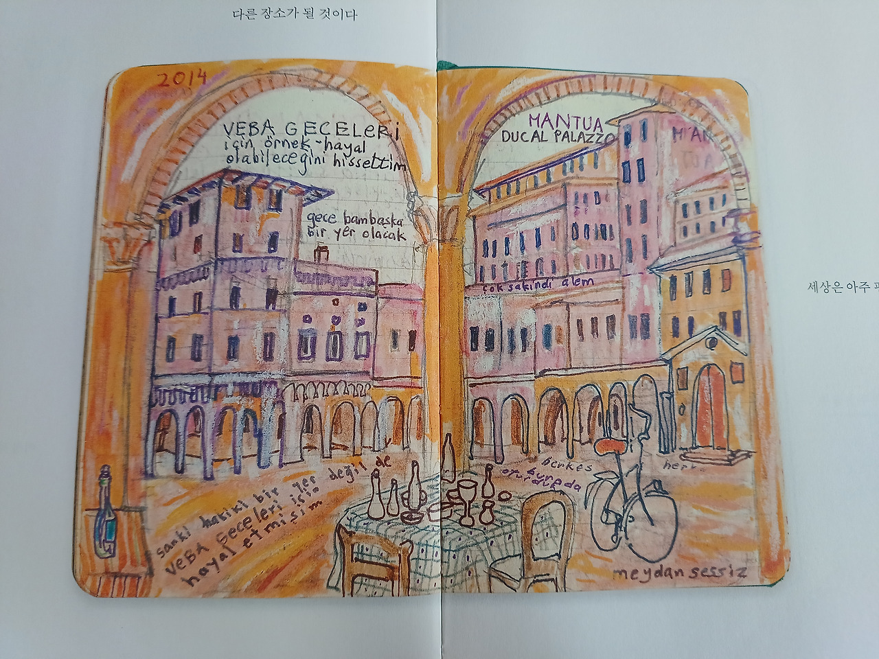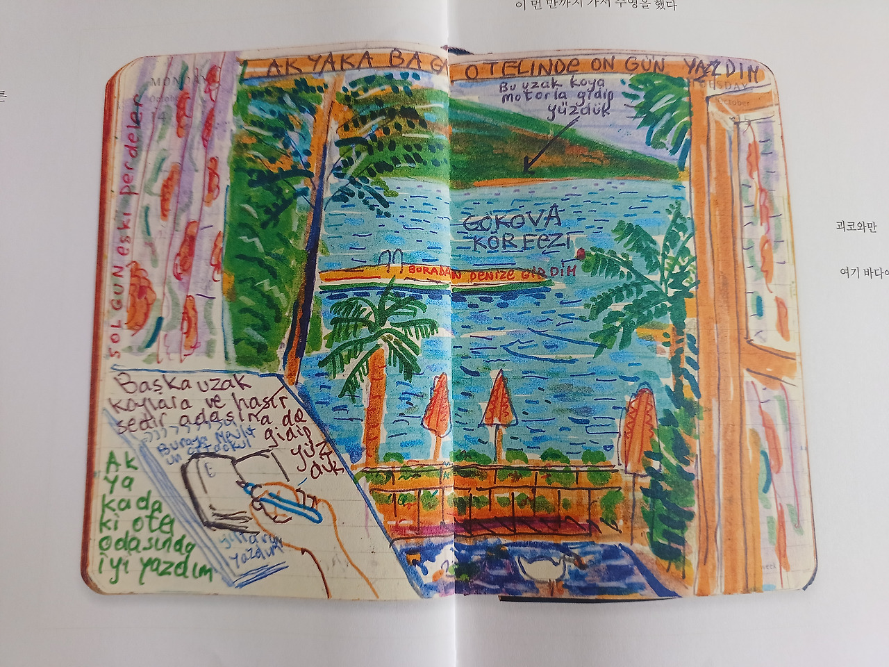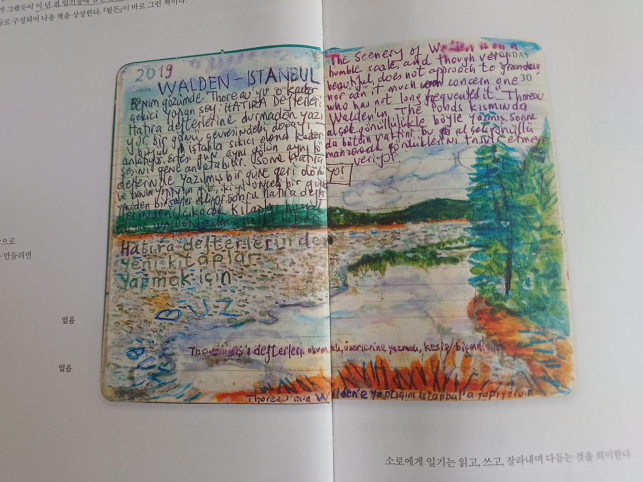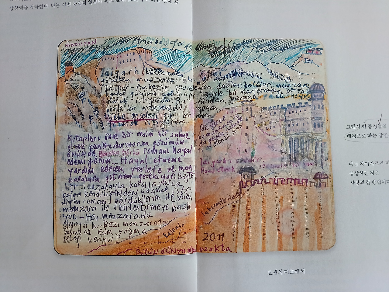 나도 평생 일기를 썼고 지난 일기에 많은 공백이 있다. 나도 간 혹 지나간 일기의 빈 페이지를 한 참이 흐른 후에 채워 넣을 때도 있다. 물론 오르한 파묵의 혼잣말은 나중에 <먼 산의 기억>처럼 의미 있는 내용으로 그림과 어우러지며 또 다른 작품이 되겠지만, 나는 그저 개인의 취미 생활수준이다. 그가 출간 인터뷰를 할 때, 우리 역사의 부끄럽다 못해 참담한 한 페이지가 만천하에 드러나 고개를 들 수 없는 시기였다. 내 일기를 공개할 일은 없으니 부끄러울 일은 거의 없을 것이다. 그럼에도 불구하고 계속 써 나가라는 오르한 파묵의 말은 나에게 깊은 위로가 되었다. 분명히.