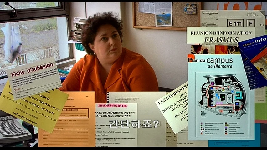 영화의 도입부는 주로 프랑스어가 들리는데, 자비에가 스페인 바르셀로나 유학에 필요한 서류를 준비하는 과정부터 어처구니없이 웃긴다. 장장 스무 가지에 이르는 유학 서류를 석 달 전에 접수했는데, 그 서류가 분실되어 '간단한 서류 20장'을 처음부터 다시 작성해야 했다. 유학도 가기 전에 자기 나라에서 차별당하는 분위기다. 루이스와 교류하면서 스페인 사람들의 '느림의 미학'을 알게 되었지만 프랑스도 만만치 않았구나 싶다.