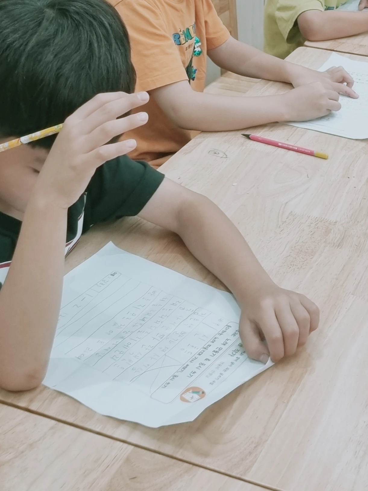 첫 수업이라 오리엔테이션을 할까 생각했다. 강사 소개를 하고 돌아가며 자기소개를 하면서 앞으로 어떻게 수업이 진행될지 소개를 하다 보면 20분은 훌쩍 넘길 테고, 그림책 하나 읽어주면 무난하게 마무리되지 않을까도 생각했다. 하지만, 이내 생각을 고쳐먹었다. 저학년 수업은 첫 만남에서 카리스마를 보여줘야 한다. 잠시도 딴짓할 틈을 줘서는 안 된다. 과제를 모두 채워 제출하도록 몰아붙였다. 나눠준 종이에 답을 다 써야 수업이 끝날 것이며 하기 싫어도 끝까지 해보는 힘을 기르자고 말했다.