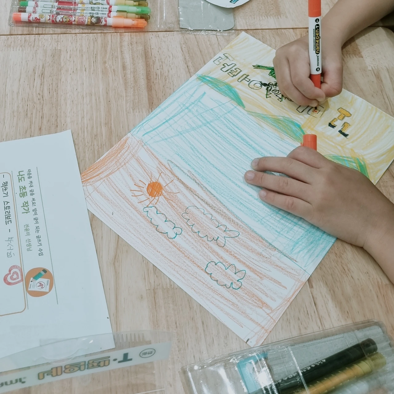 처음에 계획했던 초등 저학년 대상 글쓰기 수업은 백지를 나눠주고 아이들의 생각을 마음껏 쓰는 수업을 꿈꿨다. 주제를 설명한 후, 생각하는 시간을 주고, 말하듯 글 쓰는 방식을 알려주고 싶었다. 하지만, 첫 수업을 앞두고 이내 생각을 고쳐먹었다. 아이들 수준도 모르고, 반 인원수도 정확히 모르는 상태라 안전하게 수업을 진행하는 것이 좋을 것 같아 워크북을 만들기로 했다. '5분 만에 끝났다고 하면 어쩌지? 글쓰기 싫다고 단어 하나만 딸랑 쓰면 어쩌지?'