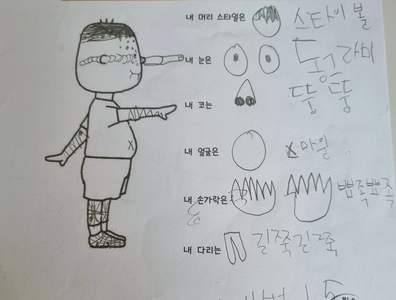 내 코는 어떻게 생겼나? 내 손가락은? 내 몸은? 나는 어떠한지 글쓰기