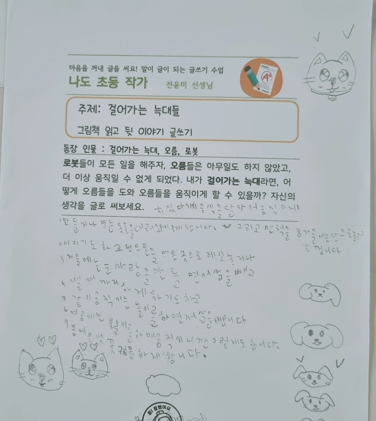 *아이들이 쓴 글을 그대로 옮겨본다.