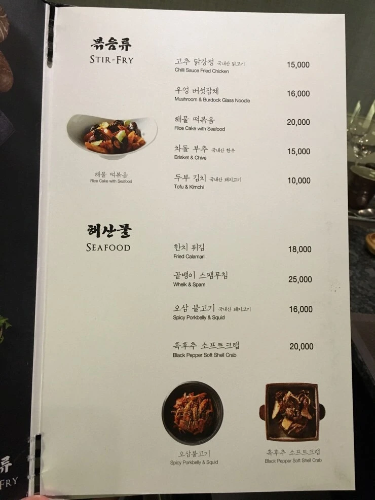 찜 & 식사류 & 볶음류 & 해산물 가격