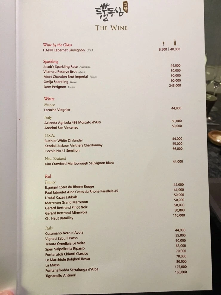 와인 가격(뒷장을 깜빡하고 못찍었...)