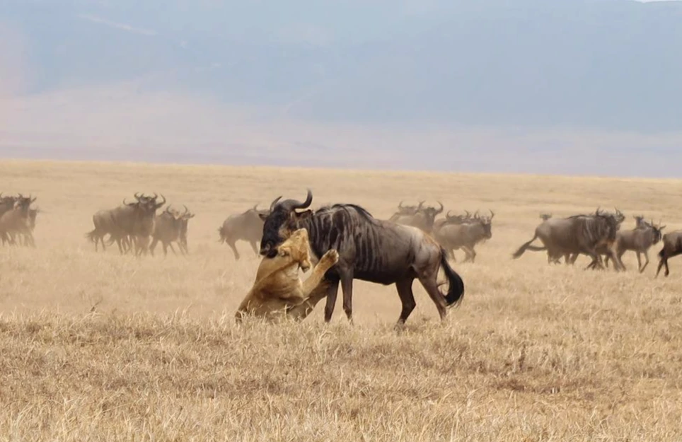 나중에 알고 보니 애니스트가 암사자의 자세를 보고 곧 사냥할 것이란 걸 예측해 그 명당 중 명당에 자리를 잡고 기다리고 있었던 것이었다. 애니스트도 응고롱고로에서 사자가 사냥하는 모습을 본 것은 3개월 만이라고 했다. 애니스트의 예측력과 운이 합쳐져 우리 차 멤버들은 캠핑장으로 돌아와 두고두고 자랑할 만한 멋진 장면을 두 눈으로 볼 수 있었다.