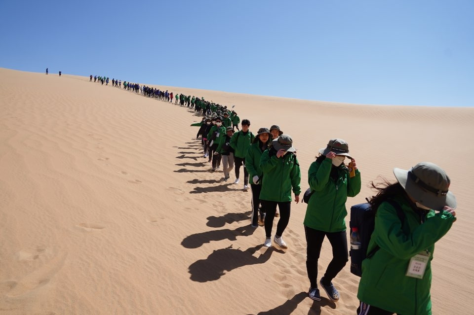 저를 사막으로 데려가 준 고마운 미래숲은 지난 2006년부터 우리나라로 불어오는 황사의 약 37%가 발원하는 중국 내몽고자치구 쿠부치사막에서 대규모 사막화방지 사업을 진행해 온 멋진 곳이에요. 지난해까지 천100만 그루의 나무를 심었고 4천30ha의 사막을 녹색숲으로 바꿨다고 합니다.