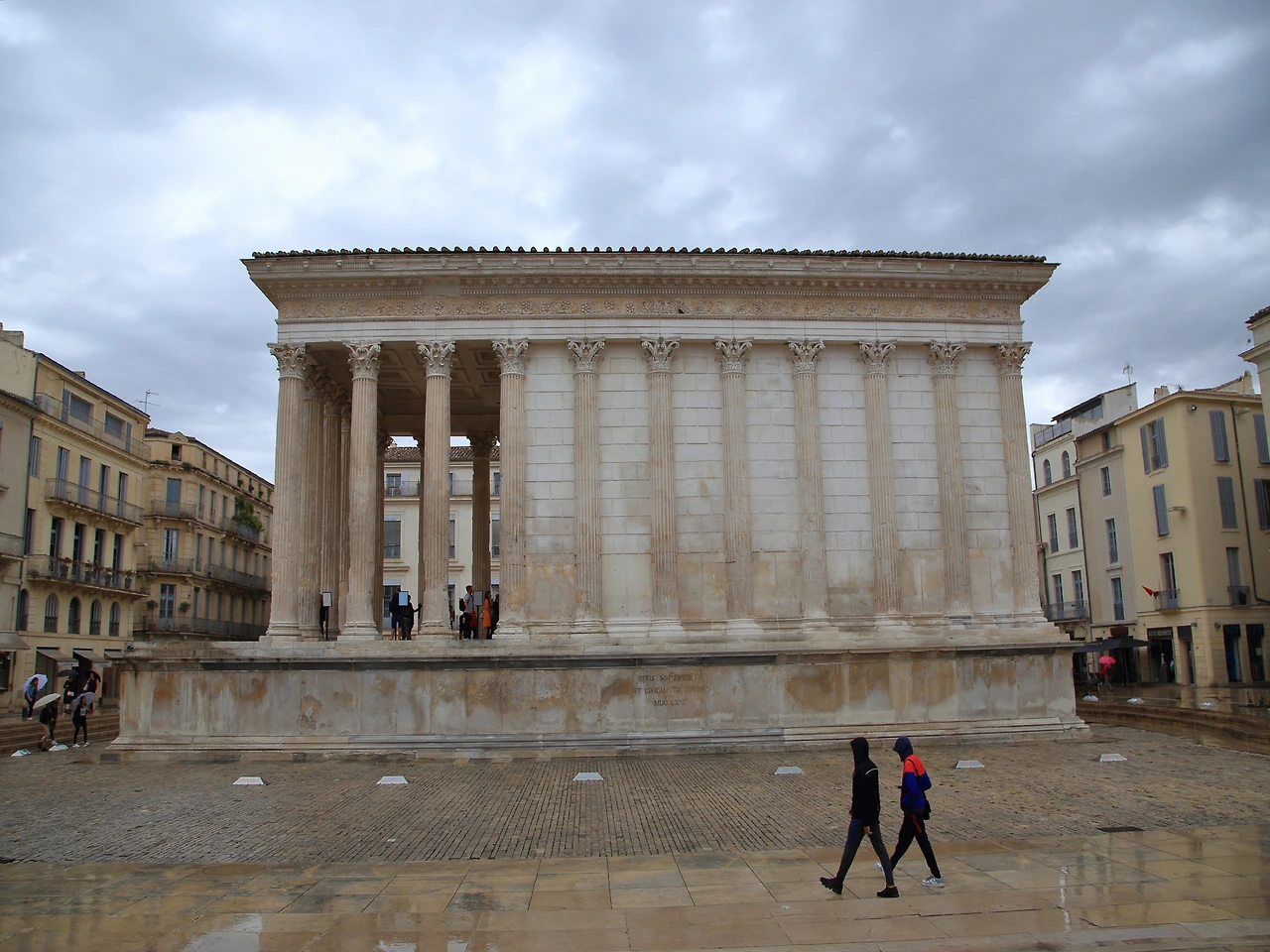 경기장에서 그리 멀지 않은 메종카레는 세월의 더께가 말끔히 보수돼 그 옛날 티 없던 시절처럼 들어앉아 있었다. 아우구스투스 황제의 절친한 벗이자 사위이자 로마 제국의 2인자였던 아그리파가 이 비례미 완벽한 신전을 지었다. 데생을 배울 때 모델이 되는 석고상의 한 사람이기도 한 그 자신도 균형 있는 외모를 가졌던 모양이다. 나중에 이 신전은 그의 아들들에게 봉헌됐다. 아버지가 지은 신전이 아들들에게 바쳐진 것이다. 아버지와 할아버지의 눈물이 소금꽃처럼 피어 있는 메종카레다.