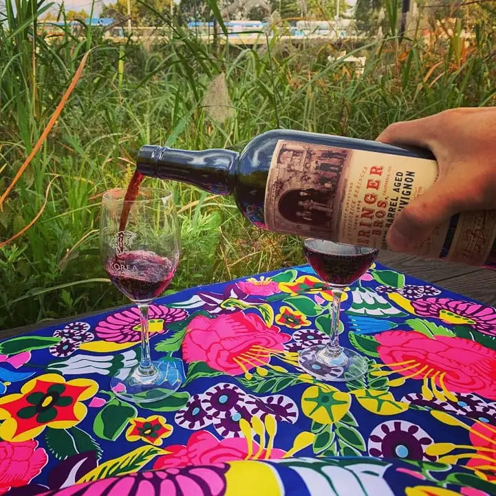 내 나름의 ‘풀밭 위의 식사’ 준비물이다. 타탄 체크의 붉은 패브릭과 레드 와인, 그리고 커플 와인잔이 들려져있다. 나는 인상적인 인생샷을 만들려는 중이다. 누구도 나를 위해 행복을 하늘에서 떨어뜨려 주지는 않는다.