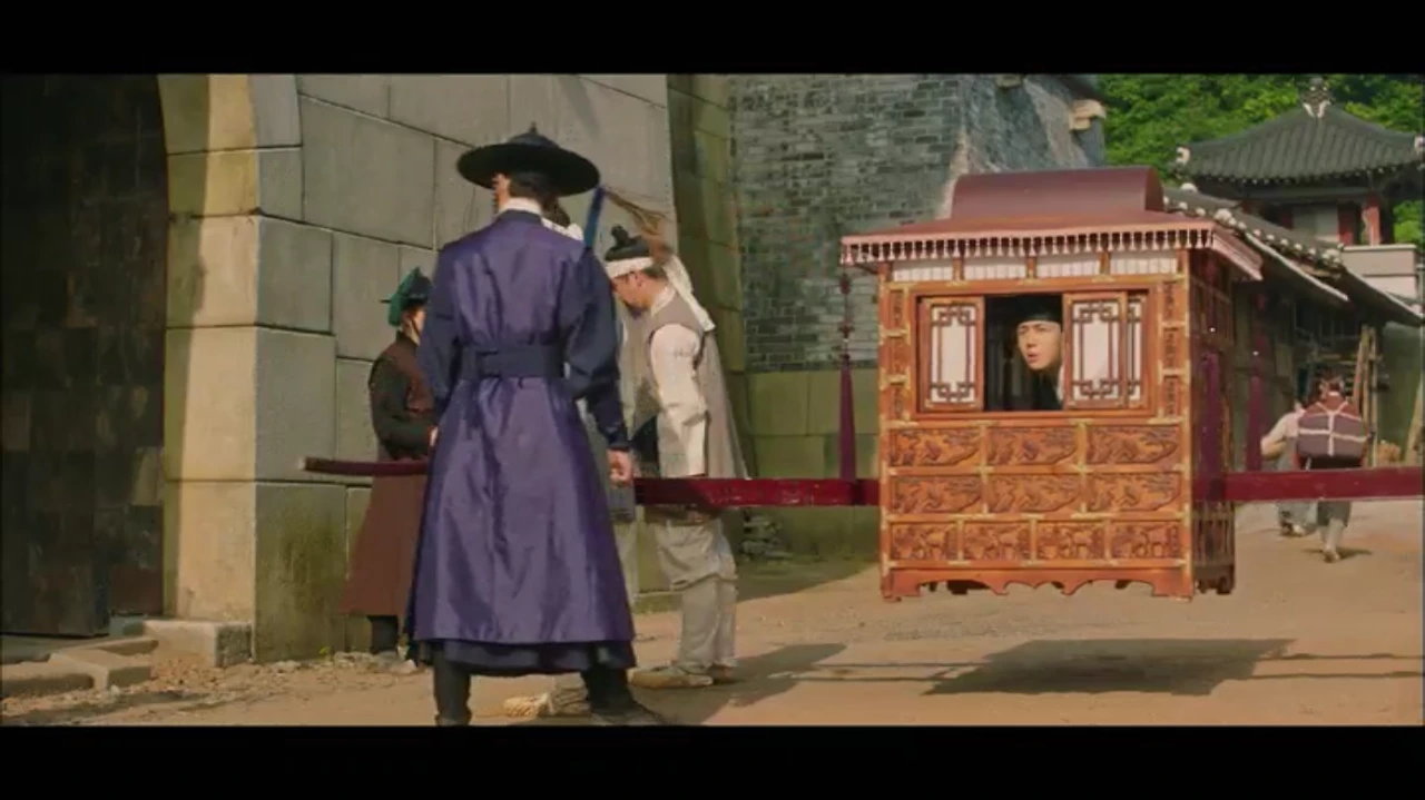 가마를 타고 눈을 피해 궐에 들어가는 제윤.