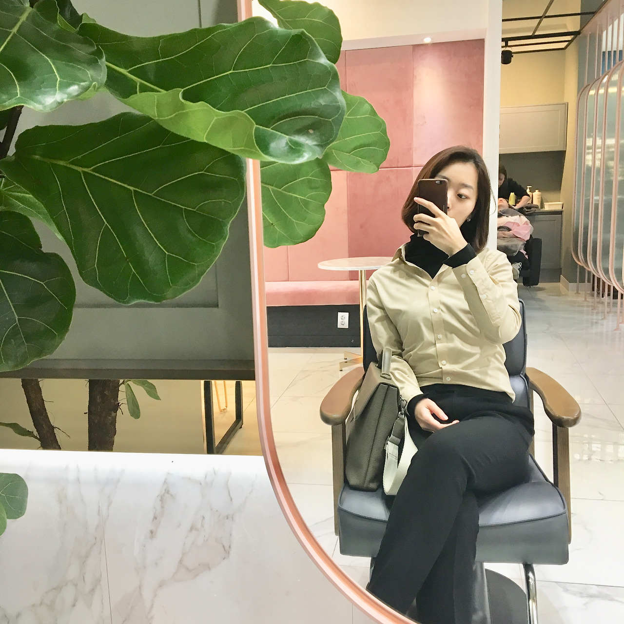 셔츠를 입었더면 좀 더 포멀했겠지만 계절덕에 조금 더 캐주얼하고 부드러운 무드를 더할 수 있었다.