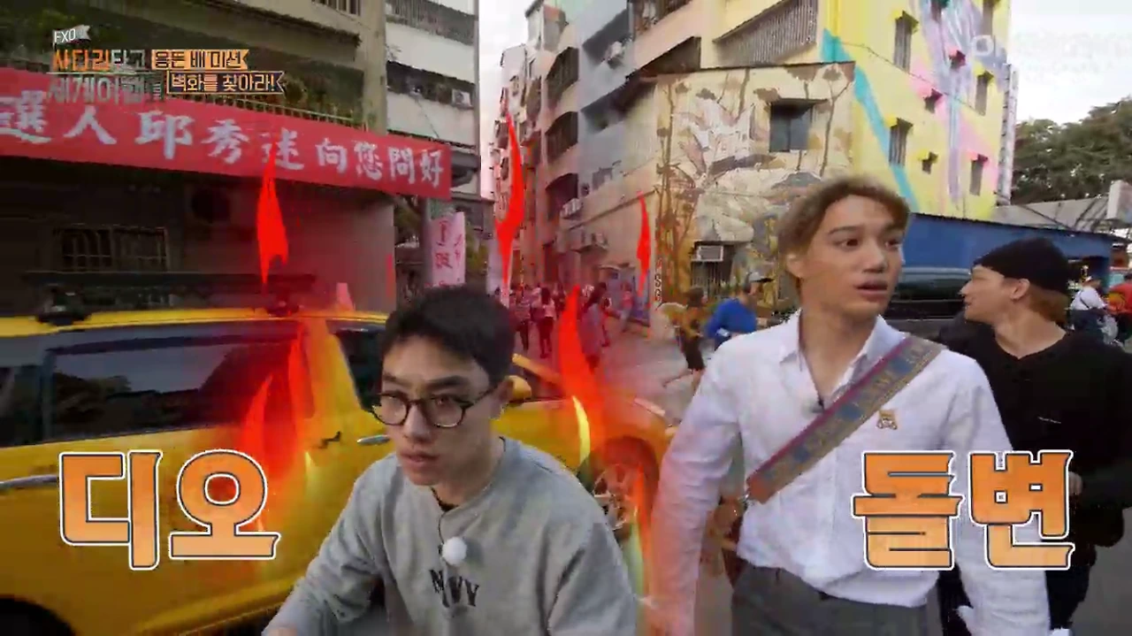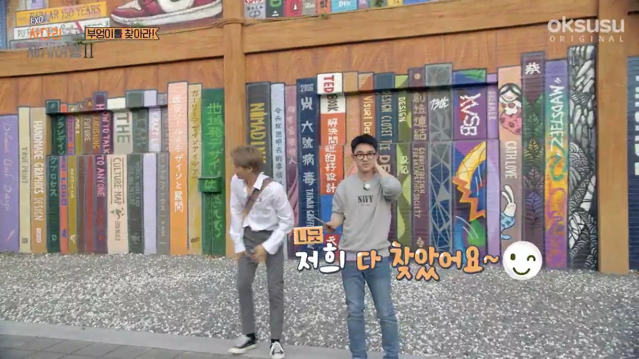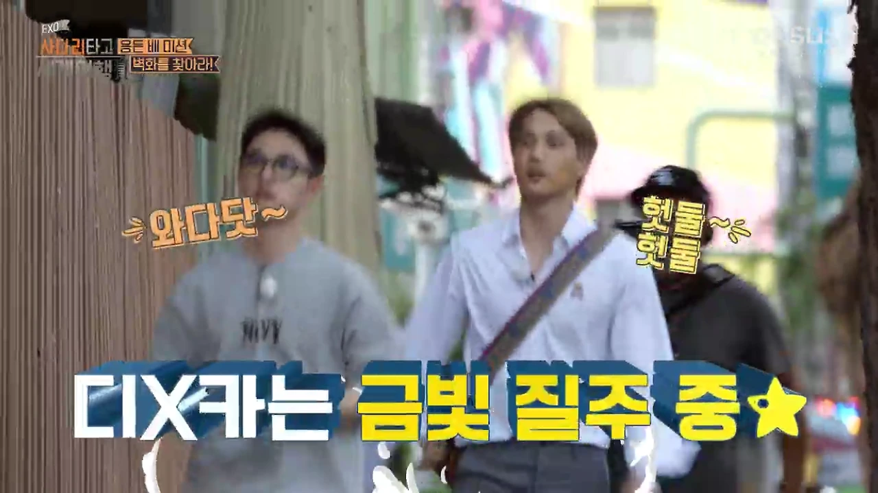 여기서 다른 이의 아웃룩이 생각나서 가져온 사진 몇 장. 디오가 좋아서 보는 <엑소의 사다리타고 세계 여행2>에서 경수는 모범 초등학생 스타일의 맨투맨에 청바지 조합을 잃지 않는 반면 그 옆에 종종 등장하는 카이는 옷을 아주 많이 갈아입는데다가 또 아주 예쁜 옷만으로 화면을 가득 채운다. 그를 보관하려고 누른 캡쳐버튼은 하나도 없어서 아쉽게도 경수 옆의 사진만 몇 장 가져올 수 있었다.