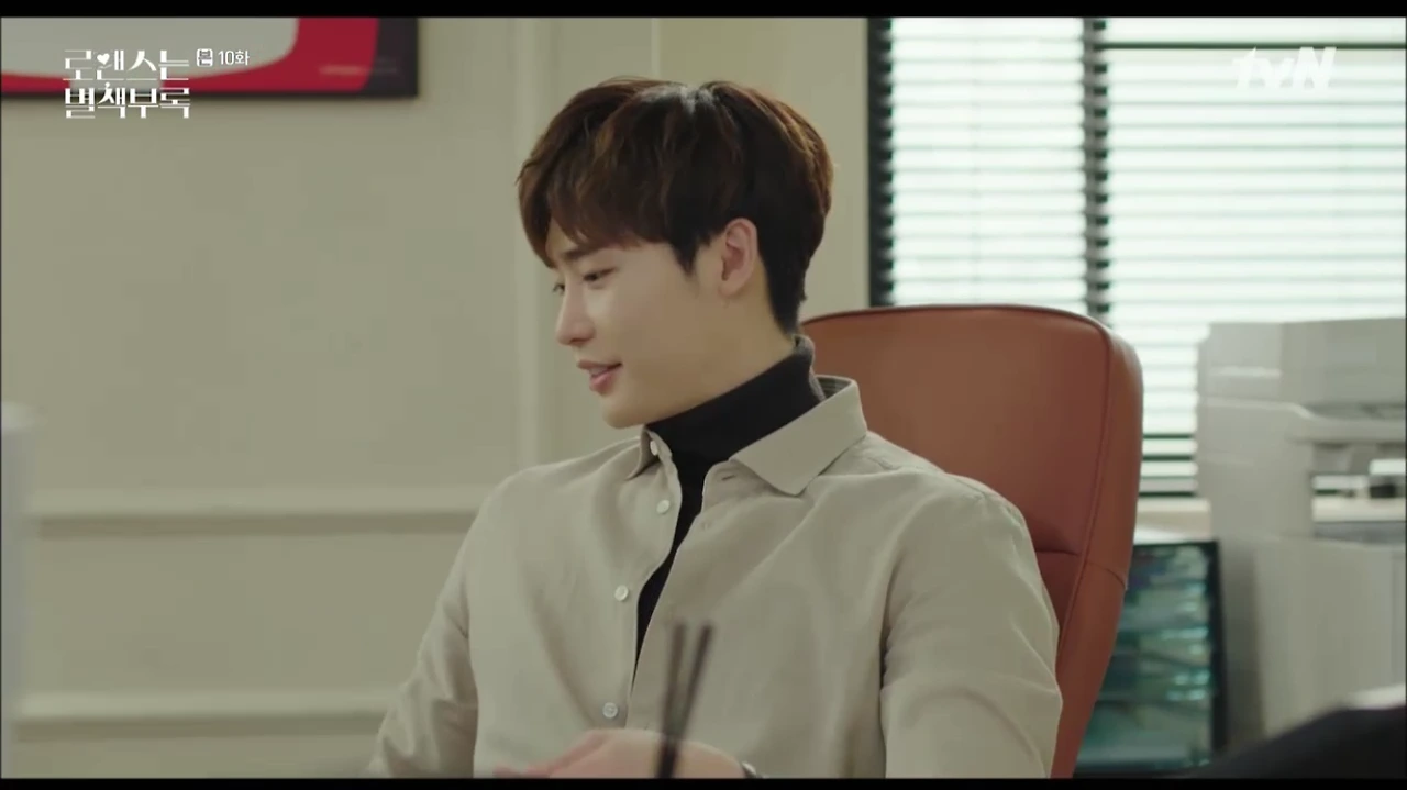 개인적으로 지서준 캐릭터를 좋아하지는 않지만 그의 아웃룩 역시 눈여겨볼 점이 아주 많다. 차은호만큼 지적이고 은근히 화려한 모습으로 나오지는 않고 심플하고 부드러운 옷 위주로 입는데 목도리같은 소품을 이용해서 종종 포인트를 준다.