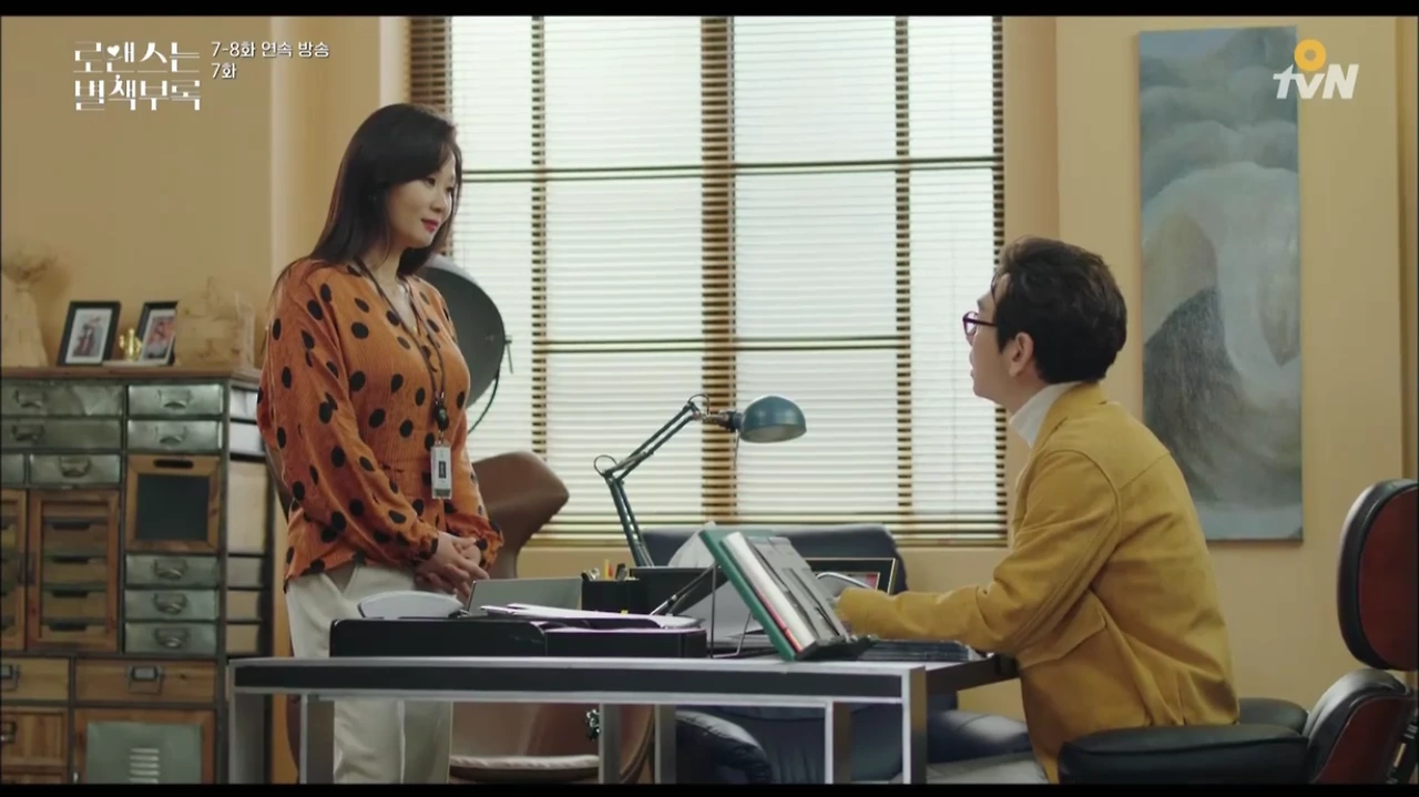 마케팅 팀장인 서영아 팀장의 아웃룩은 언제나 밝고 쨍하고 화려하다. 그녀의 밝고 경쾌한 성격을 잘 드러내주는 것 같다. 그동안 후줄근한 옷을 입고 엄마 역할을 해오던 김선영 배우가 이 역할 을 맡아서 저런 옷을 입고 신나게 연기해주어서 너무 좋다. <로맨스는 별책부록>의 주역은 김선영이다.