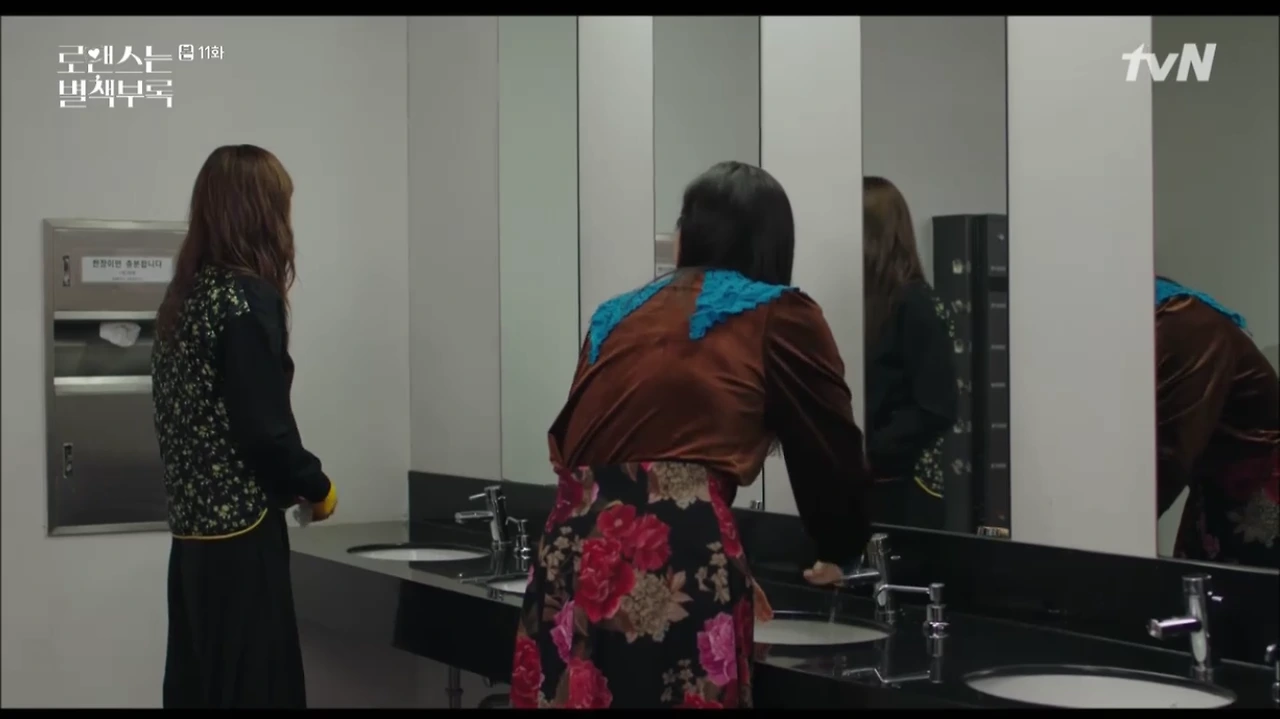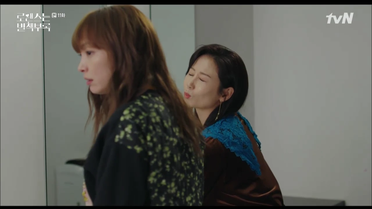 그 와중에 자칫 할머니 옷으로도 보일 수 있는 의상을 찰떡같이 소화하고 있는 서영아 팀장과 강단이 사원