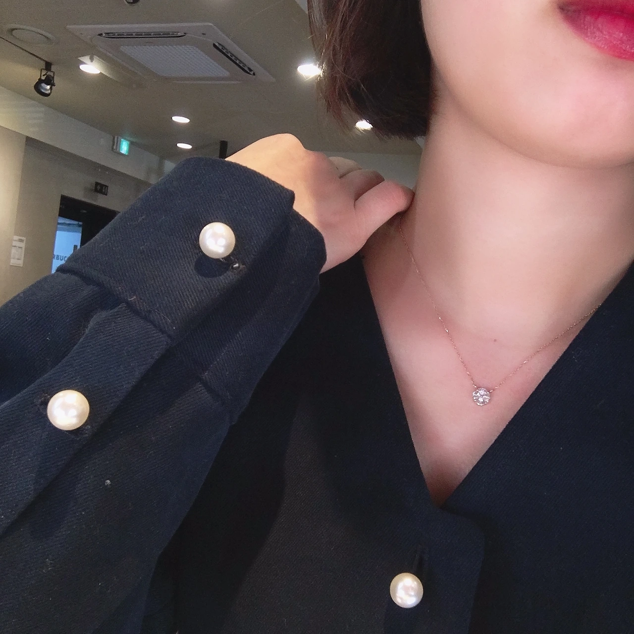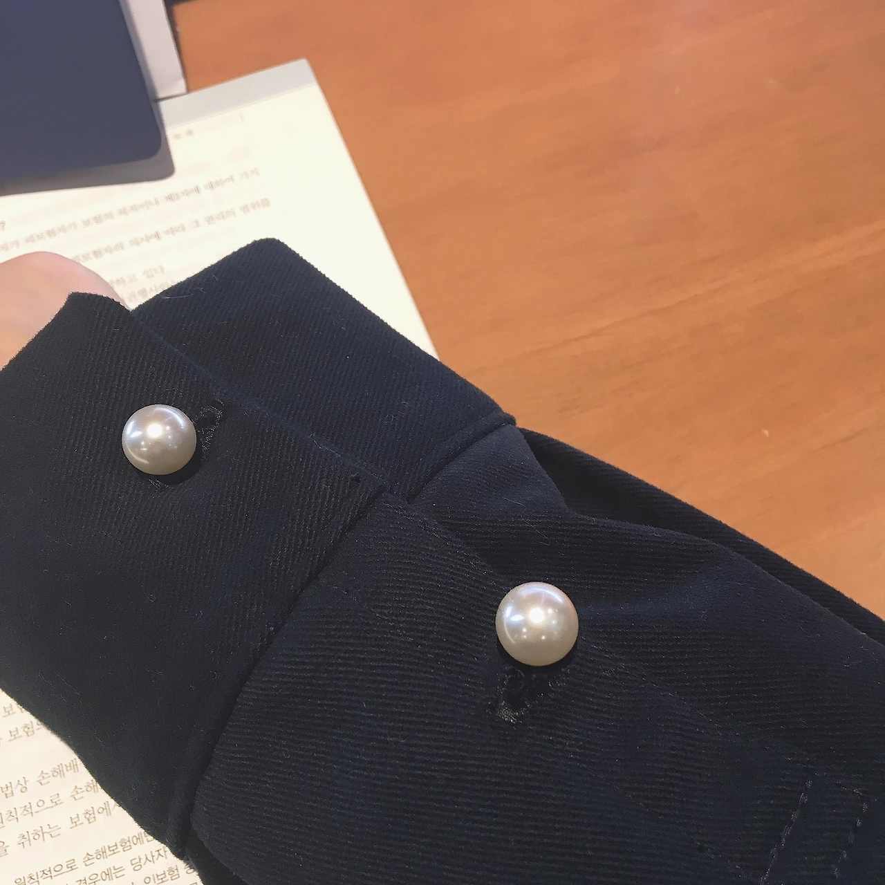 소매 부분에도 진주로 디테일을 더했다. 여밈 부분에도 있지만 테이블에 팔을 올려놓았을 때 담백한 진주가 포인트가 분명 되었을 것이다. 팔불출이 되어 가는지, 볼 때마다 너무 예쁘다.
